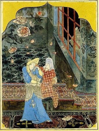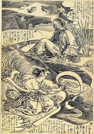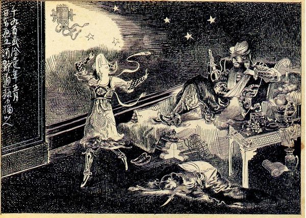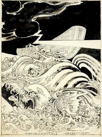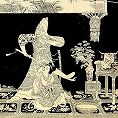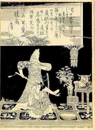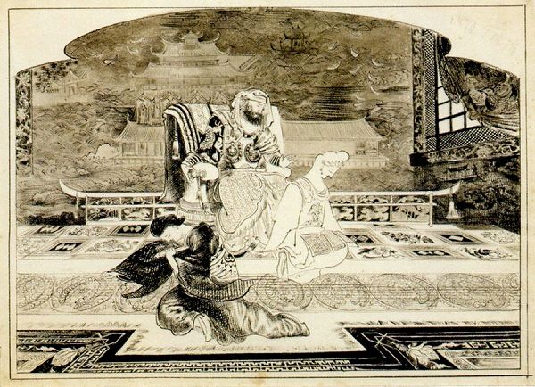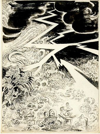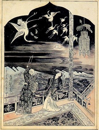 「項羽と劉邦」挿絵原画 第4幕第2場「項羽が鶴を殺す、虞姫から目出度いといわれ」