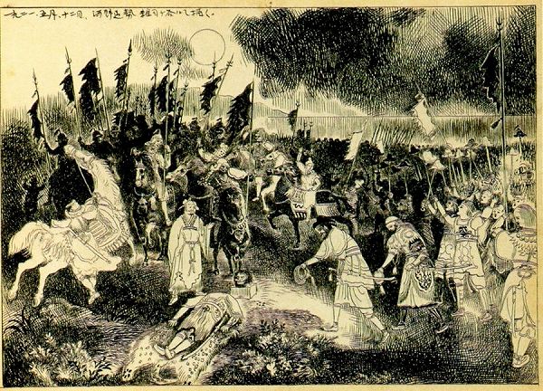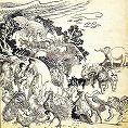 「項羽と劉邦」挿絵原画 大詰「項羽を葬る劉邦」